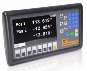 Der Tisch läßt sich 90°aus der horizontalen Stellung in die vertikale Position ausschwenken. Jede Drehung der Handkurbel schwenkt den Tisch um 3 Grad und 5 Minuten.